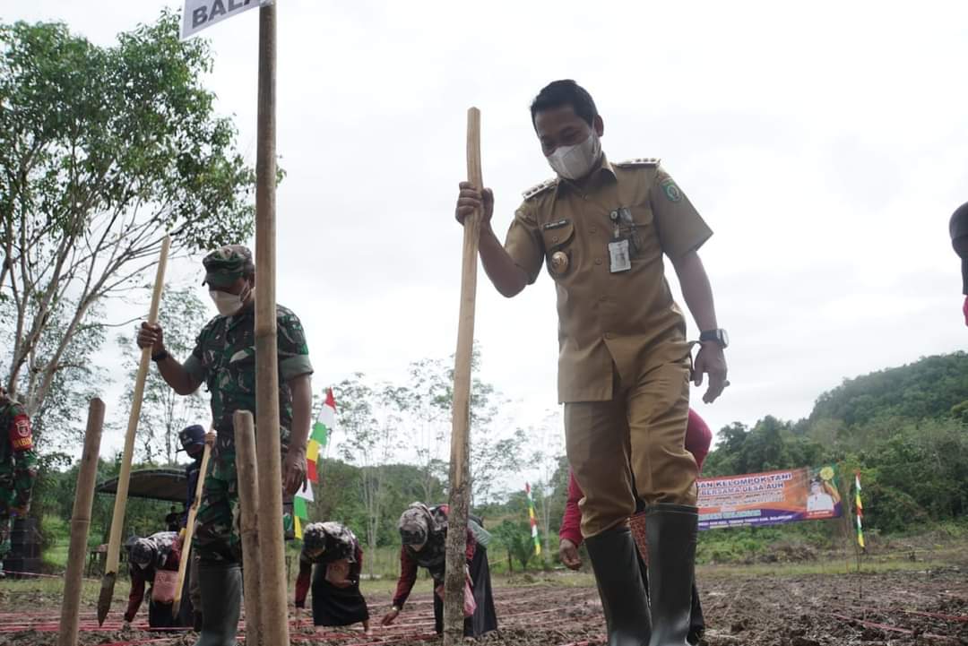 KANALKALIMANTAN.COM, PARINGIN– Bupati Balangan Abdul Hadi bersama jajaran dan gabungan kelompok tani (Gapoktan) melakukan tanam perdana tumpang sari jagung dan kedelai di Desa Auh Kecamatan Tebing Tinggi, Senin (27/12/2021).