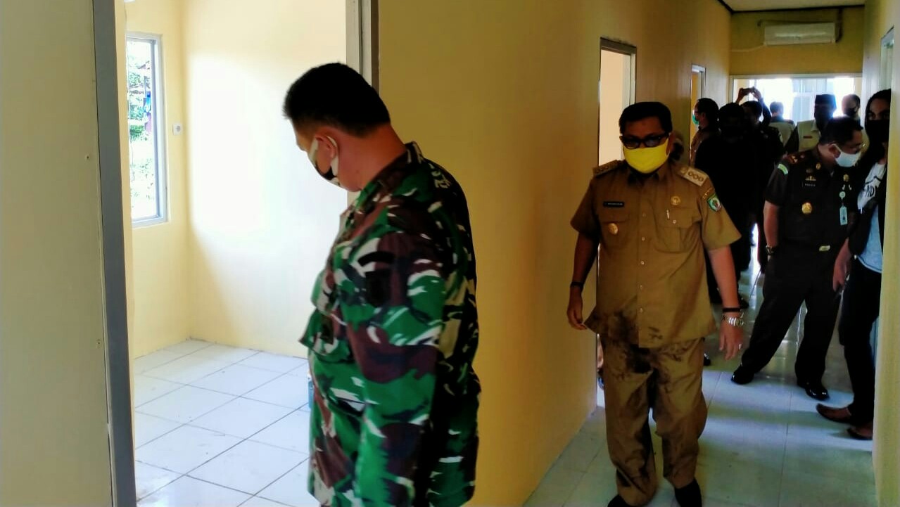 KANALKALIMANTAN.COM, PARINGIN – Bupati Balangan H Ansharuddin meninjau ruang tempat isolasi pasien Covid-19 di RSUD Balangan, Senin (18/5/2020). Peninjauan dilakukan bersama Tim Gugus Tugas Covid-19 Balangan.