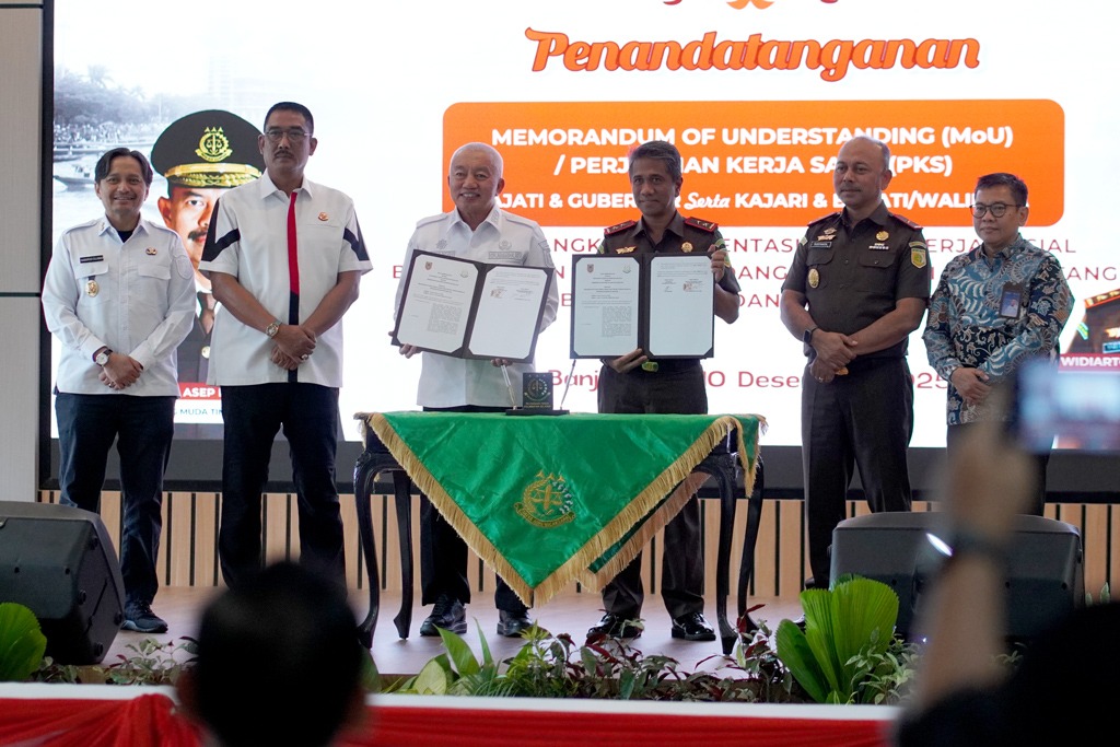 KANALKALIMANTAN.COM, BANJARBARU – Penandatanganan Memorandum of Understanding (MoU) dan Perjanjian Kerja Sama (PKS) antara Gubernur Kalimantan Selatan H Muhidin dengan Kepala Kejaksaan Tinggi Kalsel Tiyas Widiarto dilaksanakan di Aula ST Burhanudin, Kejati Kalsel Banjarbaru, Rabu (10/12/2025).