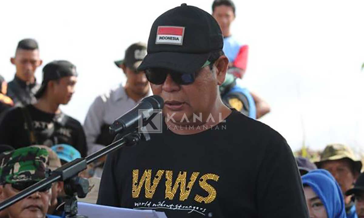 MARTAPURA, Bupati Banjar H Khalilurahman hadiri penanaman serentak rehabilitasi Daerah Aliran Sungai (DAS) yang dilaksanakan oleh Dinas Kehutanan (Dishut) Kalsel dan para pemegangan Ijin Pinjam Pakai Kawasan Hutan (IPPKH), di Desa Tiwingan, Kecamatan Aranio, Kabupaten Banjar, Rabu (18/4).