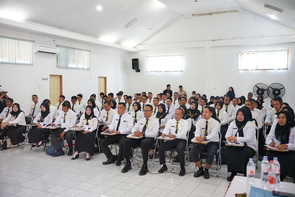 Di depan para peserta, ia menyampaikan materi motivasi dengan menekankan pentingnya nilai-nilai dasar Core Values ASN “BerAKHLAK”.