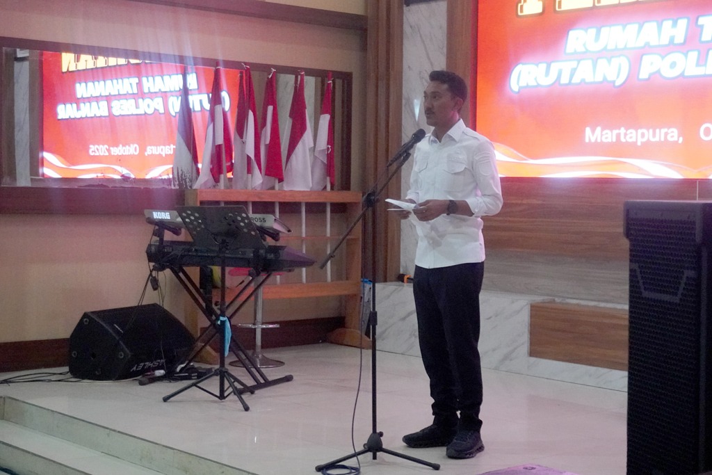 KANALKALIMANTAN.COM, MARTAPURA – Penandatanganan prasasti oleh Kapolres Banjar AKBP Fadly, disusul dengan pengguntingan pita bersama Bupati Banjar H Saidi Mansyur menandai diresmikannya Rumah Tahanan (Rutan) Kepolisian Resor (Polres) Banjar, Selasa (28/10/2025) siang.