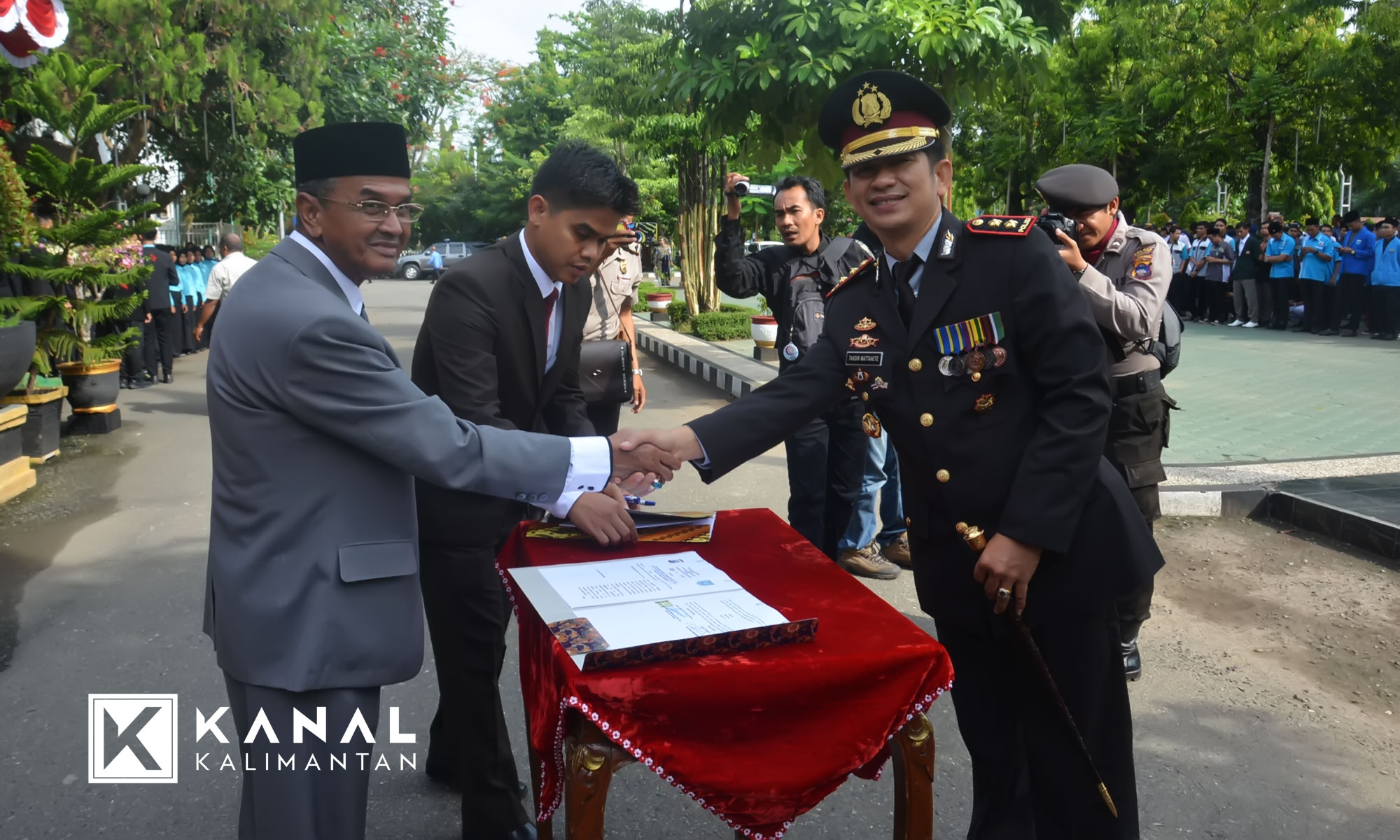 Sementara diakhir acara Apel Peringatan Hari Pahlwan, Kapolres Banjar AKBP Takdir Mattanete menandatangani kesepakatan bersama antara Pemkab Banjar dan Polres Banjar dalam program Kerjasama Pembinaan Pelatihan Bagi Calon Peserta seleksi anggota Polri Tahun 2018. (hendera)