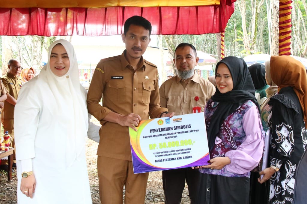 Di tempat yang sama juga dilakukan penyerahan bantuan benih sayuran untuk KWT Berkah Kaliputat dan penyerahan secara simbolis bantuan kegiatan P2L tahun 2024. Masing-masing sebesar Rp 50 juta oleh Bupati Banjar didampingi Ketua TP PKK dan Plt Kepala Dinas Pertanian Banjar Nashrullah Shadiq kepada 6 KWT dan 1 Kelompok tani (Poktan).