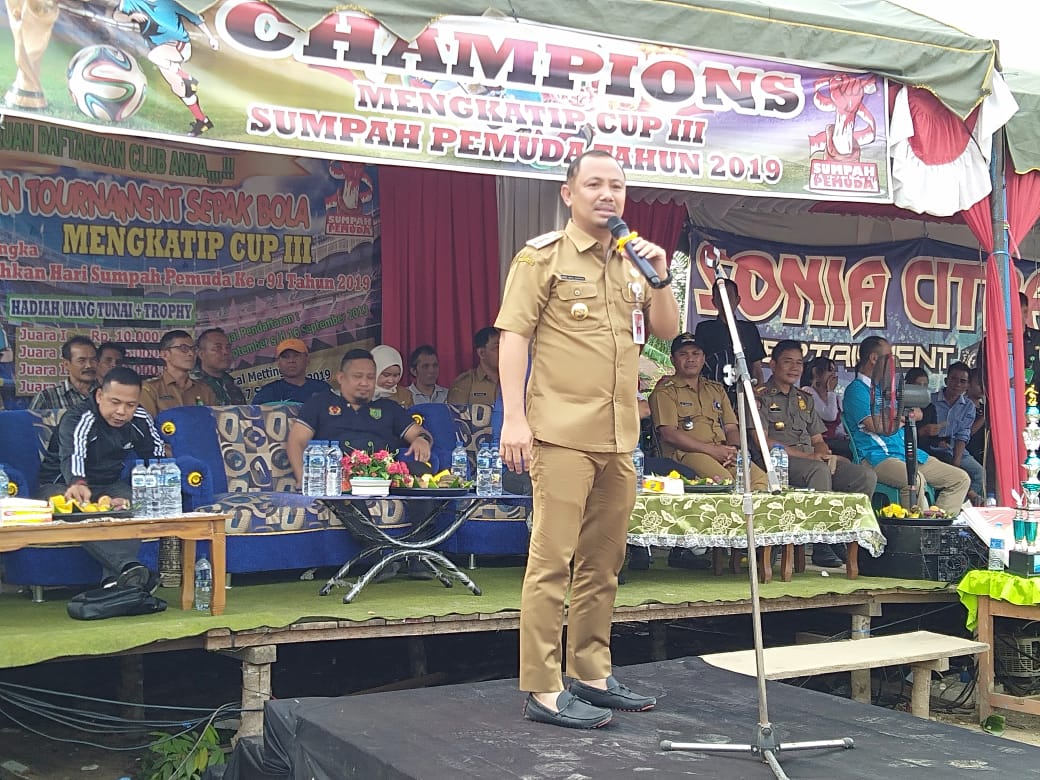 BUNTOK, Guna meningkatkan kecintaan dan apresiasi terhadap sepakbola di Barsel, Bupati H Eddy Raya Samsuri beserta rombongan menghadiri laga final pertandingan Liga Mangkatip Cup III di Kecamatan Dusun Hilir, Selasa (29/10).