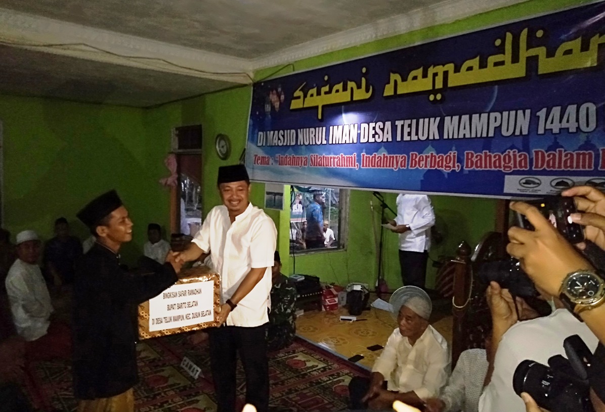 BUNTOK, Bupati Barito Selatan (Barsel) Eddy Raya Samsuri melaksanakan safari ramadhan ke Masjid Nurul Iman, Desa Teluk Mampun, Kecamatan Dusun Selatan (Dusel), Kamis (23/5). Bupati mengatakan, safari ramadhan merupakan kesempatan mempererat tali silaturahmi antar umat muslim selama kunjungannya di wilayah Barsel.