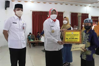 Penyerahan bonus umrah sendiri dilakukan Bupati Batola Hj Noormiliyani AS di Aula Selidah Kantor Bupati Batola, Rabu (06/10/2021). Mereka yang mendapatkan terdapat 15 orang terdiri dari 13 pemenang dan 2 dewan hakim dan tim kerja LPTQ dengan nilai bonus masing-masing Rp30 juta.