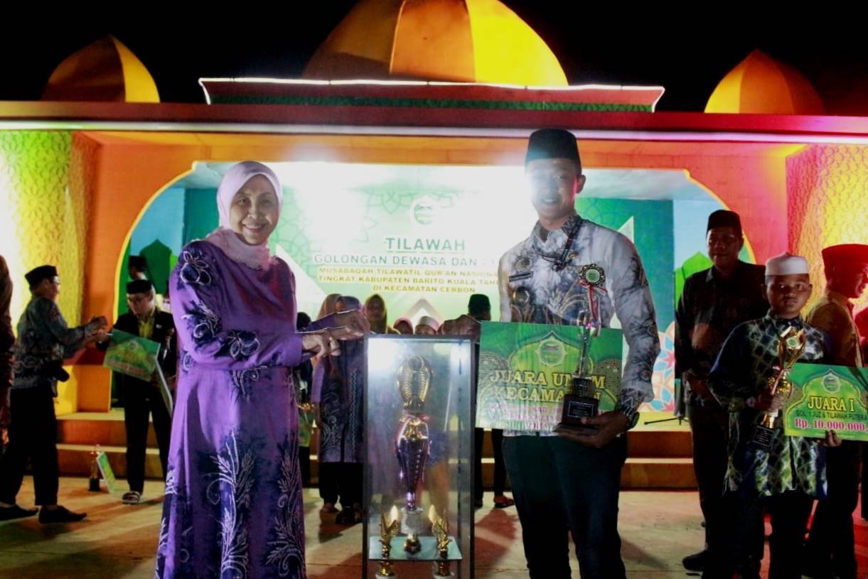 KANALKALIMANTAN.COM, MARABAHAN– Musabaqah Tilawatil Quran Nasional (MTQN) ke-53 Tingkat Kabupaten Barito Kuala (Batola) di Kecamatan Cerbon ditutup Bupati Hj Noormiliyani AS. Dalam rangkaian penutupan ini telah diumumkan para pemenang.