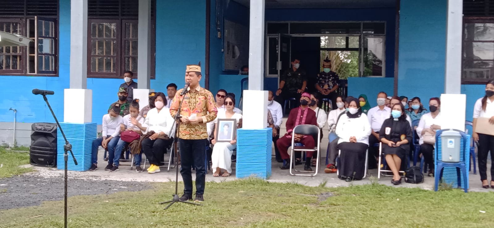 KANALKALIMANTAN.COM, KUALA KAPUAS – Bupati Kapuas Ir Ben Brahim S Bahat memimpin upacara pelepasan jenazah Berlisua, Lurah Dahirang, Kecamatan Kapuas Hilir, di halaman kantor Kecamatan Kapuas hilir, Kabupaten Kapuas, Jumat (8/7/2022).