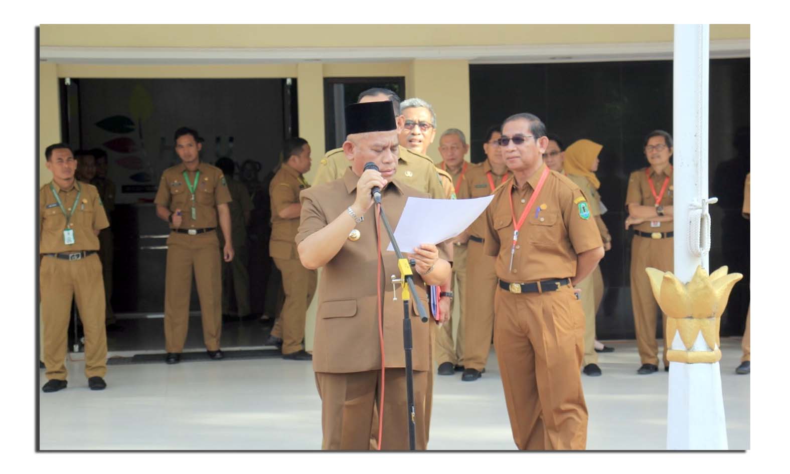 Ia pun menginstruksikan agar mencatat berapa jumlah pegawai yang hadir dalam kegiatan apel kali ini baik yang bersatus PNS maupun non PNS.