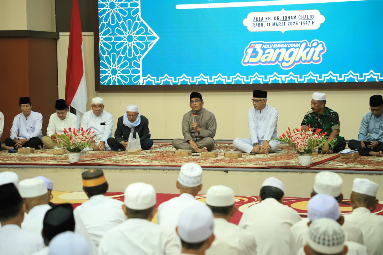 ‎Bupati HSU H Sahrujani hadiri kegiatan Takmir Ramadan PWRI HSU di aula Dr KH Idham Chalid, Rabu (11/3/2026) petang. Foto: diskominfohsu