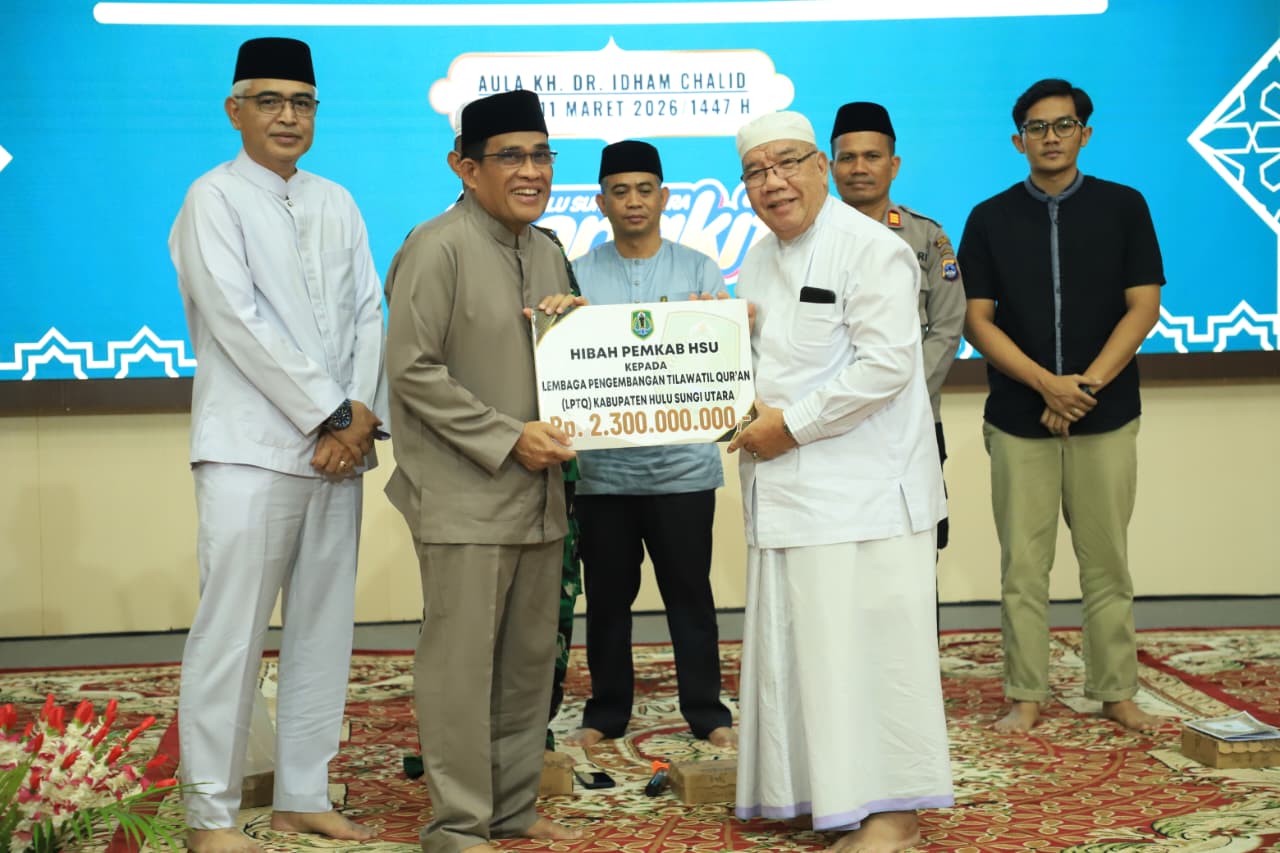 Dalam kesempatan tersebut, Bupati HSU menyerahkan hibah sebesar Rp2,3 miliar kepada Lembaga Pengembangan Tilawatil Qur’an (LPTQ) Kabupaten HSU sebagai bentuk dukungan memajukan pendidikan dan pembinaan baca tulisan Al Qur’an.