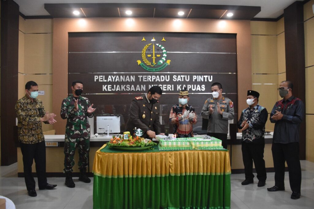 KANALKALIMANTAN. COM, KUALA KAPUAS – Bupati Kapuas Ir Ben Brahim S Bahat menghadiri peringatan Hari Bhakti Adhyaksa ke-61 di Kejaksaan Negeri (Kejari) Kapuas, Kamis (22/7/2021).