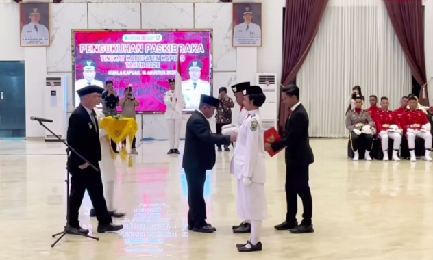 Upacara pengukuhan ditandai dengan prosesi penciuman bendera merah putih oleh Paskibraka dan penyematan kendit oleh Bupati Kapuas.