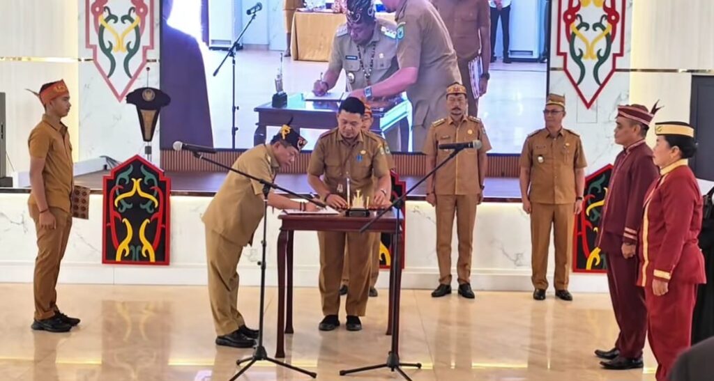 KANALKALIMANTAN.COM, KUALA KAPUAS – Bupati Kapuas, H Muhammad Wiyatno melantik dan mengukuhkan Damang Kepala Adat Kecamatan Tamban Catur dan Kapuas Hilir masa bakti 2025-2031, di hall rumah jabatan Bupati Kapuas, Senin (4/8/2025).