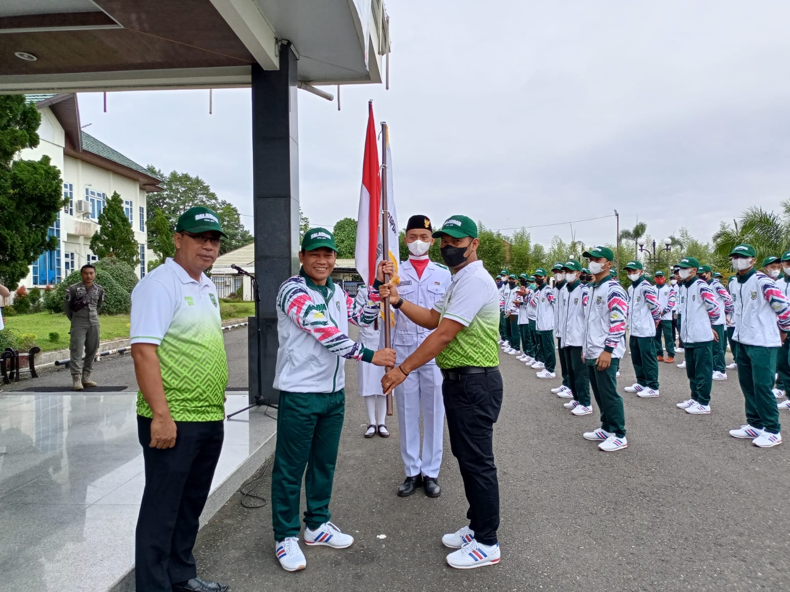 Bupati Balangan Abdul Hadi melepas kontingen di halaman kantor Bupati, Rabu, (13/7/2022).