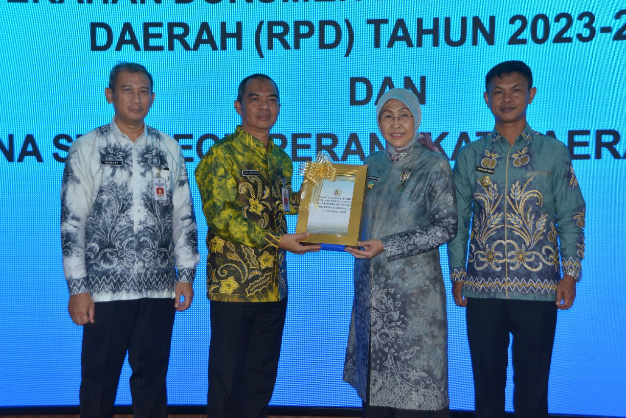 KANALKALIMANTAN.COM, MARABAHAN– Bupati Barito Kuala (Batola) Hj Noormiliyani AS menyerahkan hasil evaluasi penerapan Satuan Akuntabilitas Kinerja Instansi Pemerintah (SAKIP) Satuan Kerja Perangkat Daerah (SKPD) Tahun 2022, Kamis (20/10/2022).
