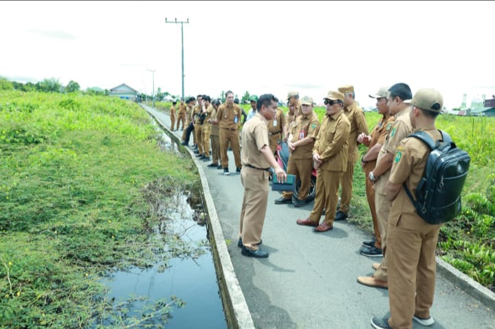 Bupati HSU memastikan tujuan peninjauan untuk melihat langsung kondisi lahan tanggul yang rencana akan dibuat jaan yang nantinya bisa dilewati kendaraan roda empat.