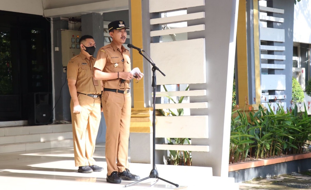 KANALKALIMANTAN.COM, MARTAPURA – Bupati Banjar H Saidi Mansyur bertindak sebagai pembina upacara pada Apel Kerja Gabungan Lingkup Pemerintah Kabupaten Banjar, di Halaman Kantor Bupati Banjar, Martapura, Senin (23/5/2022) pagi.