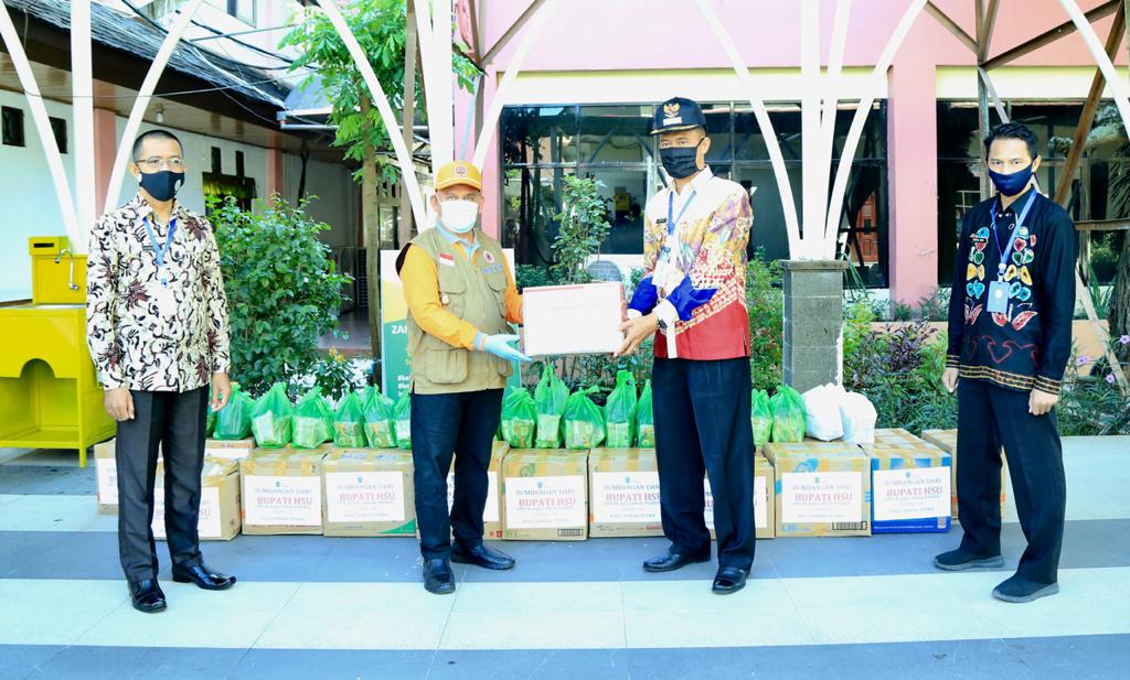 Bupati Serahkan Kebutuhan Harian 11 Keluarga Positif Covid-19 di HSU