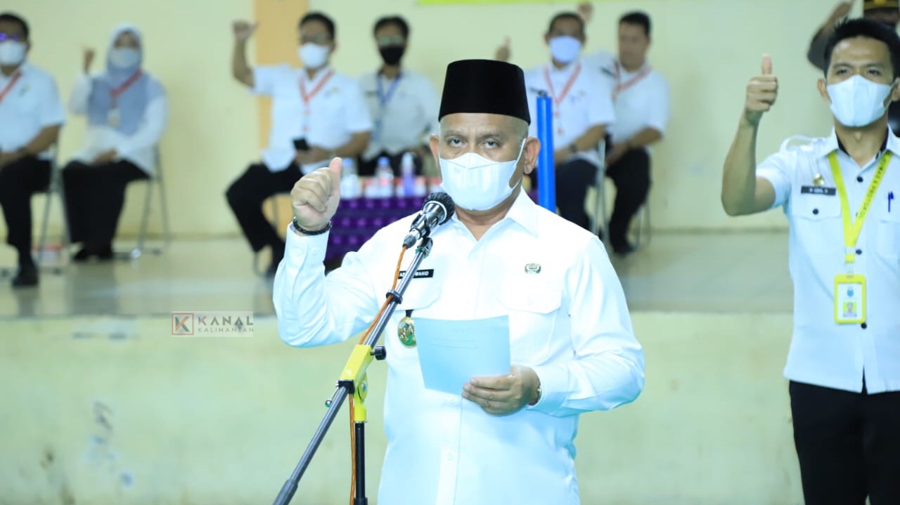 Pengambilan sumpah dan janji P3K serta penyerahan surat keputusan (SK) kenaikan pangkat PNS ini dilakukan langsung oleh Bupati HSU H Abdul Wahid HK di GOR Pangeran Suryanata Amuntai, Rabu (10/3/2021) siang.