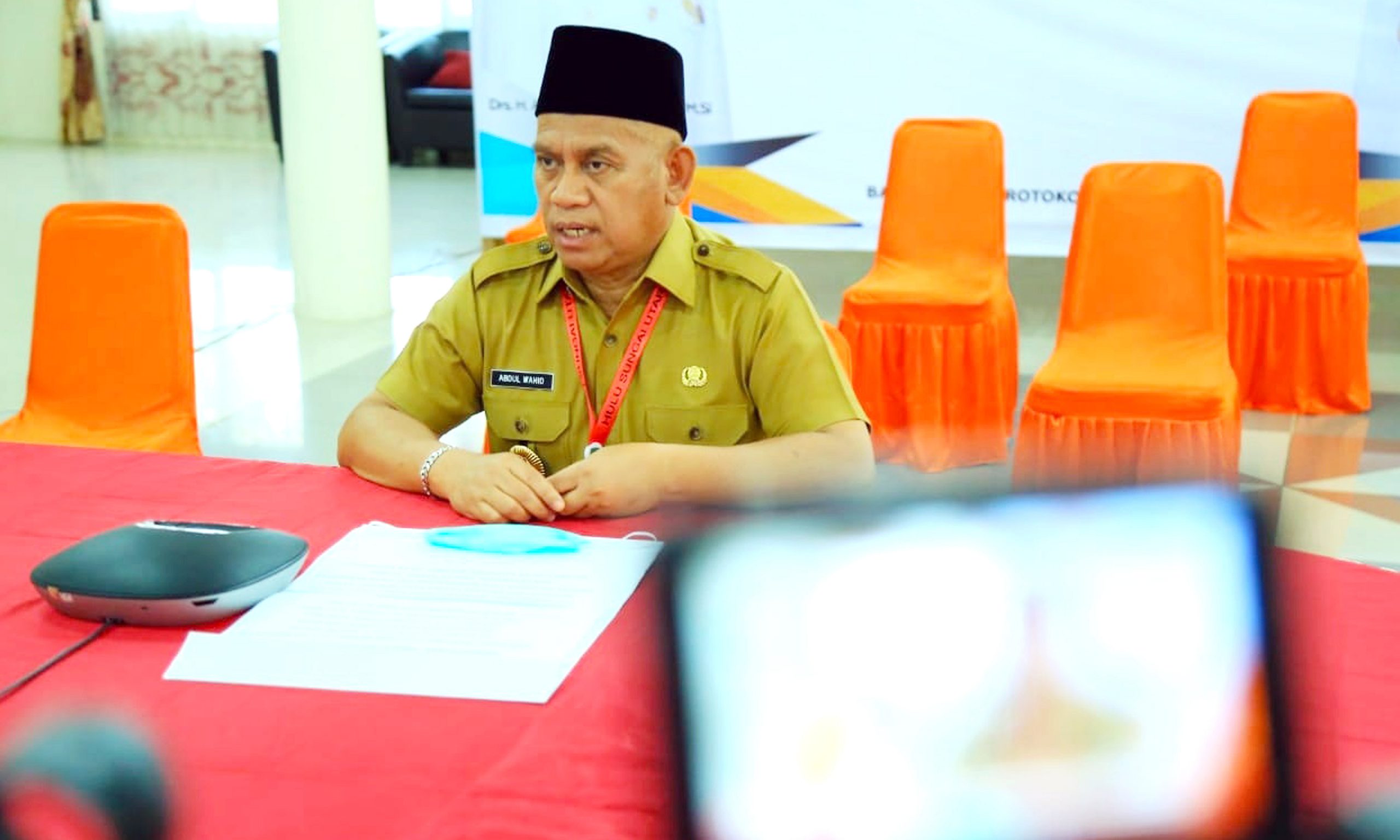 Melalui video conference di Mess Negara Dhipa, Bupati Wahid secara resmi mengucapkan belasungkawa sebesar-besarnya atas wafatnya Walikota Banjarbaru tersebut sembari mendoakan almarhum, Senin (10/8/2020)