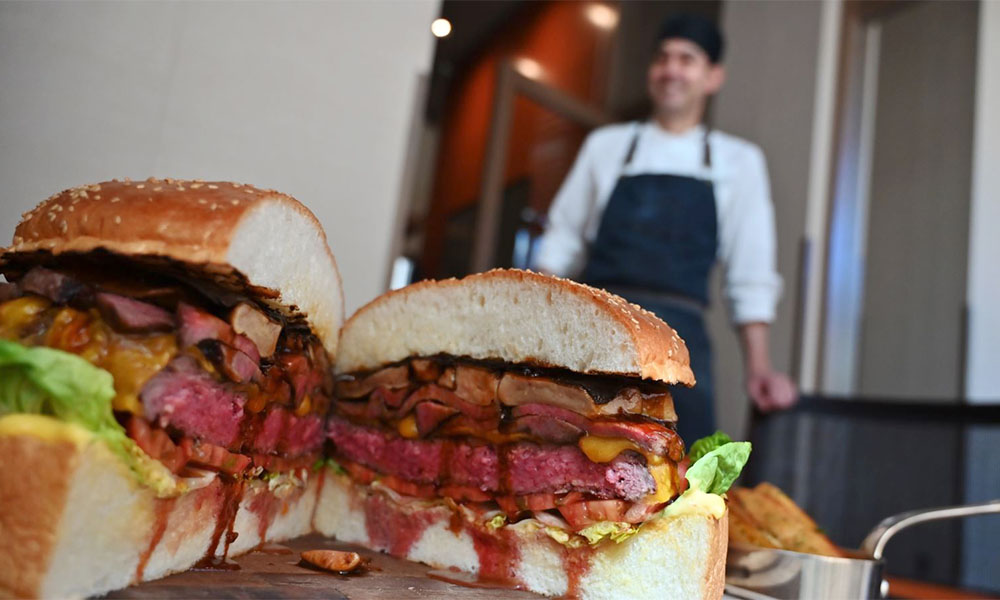 Berdiameter 25 sentimeter, burger tersebut berisi tumpukan foie gras (makanan dari Perancis yang terbuat dari hati angsa, irisan-irisan daging, dan parutan jamur langka truffle hitam.
