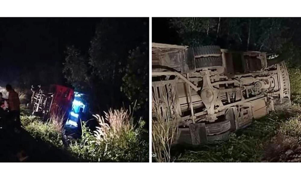 Kecelakaan diduga terjadi karena bus hilang kendali lalu keluar jalur dan terperosok di sisi jalan yang berakibat terbalik. Untungnya, jamaah yang ada di dalam bus hanya mengalami luka ringan kecuali beberapa jemaah yang harus dirujuk ke RSUD Kabupaten Pulang Pisau untuk mendapat perawatan akibat terkena pecahan kaca.