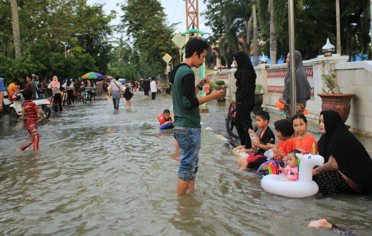 Terhitung sejak Sabtu, (8/2/2020) sampai Selasa (11/2/2020), genangan banjir di ruas jalan protokol kota Amuntai tersebut dijadikan arena bermain air bagi anak-anak, dari siang hari sampai sore. Tak hanya anak-anak dan para remaja saja yang memanfaatkan momen tahunan ini, tampak sejumlah orang tua juga sengaja ikut bermain bersama anaknya