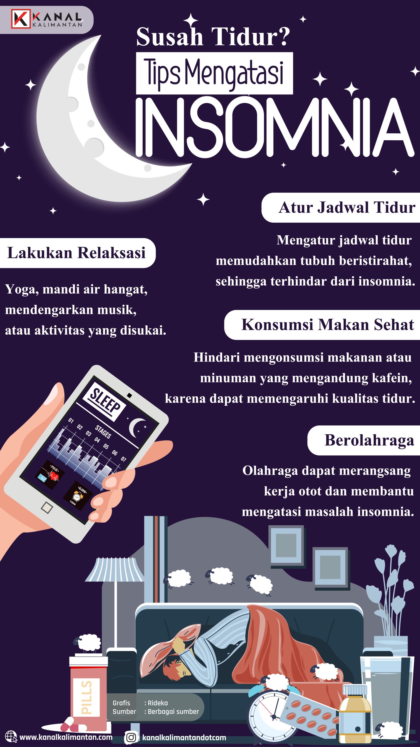 KANALKALIMANTAN.COM – Gelisah dan sulit tidur pada malam hari bisa menjadi tanda Anda mengalami insomnia. Ada beberapa cara mengatasi insomnia yang dapat dicoba agar tidur Anda lebih nyenyak dan berkualitas. Dengan demikian, produktivitas Anda sehari-hari pun tidak terganggu.