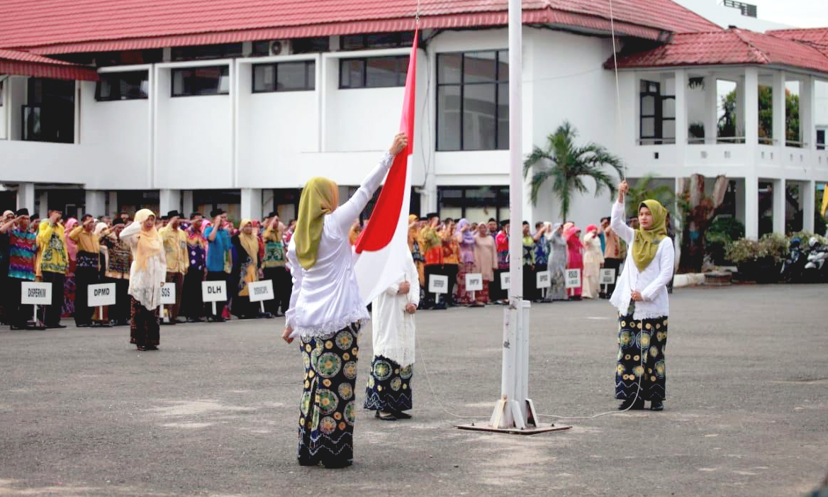 Tak hanya menggelar upacara biasa, tetapi menariknya semua petugas adalah kaum ibu. Mulai dari MC, pengibar bendera, pembaca riwayat singkat, pembaca UUD 1945, pembaca ikrar, komandan upacara, perwira upacara, hingga inspektur upacara yang kebetulan bupati adalah seorang perempuan.