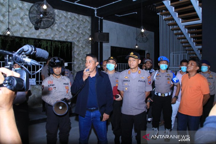 “Silahkan cafenya ditutup dan pengunjung pulang semua ke rumah. Saat ini lagi wabah virus corona, sebaiknya tinggal di rumah saja, jangan nongkrong di luar,” ucap Rachmat Hendrawan melalui pengeras suara.