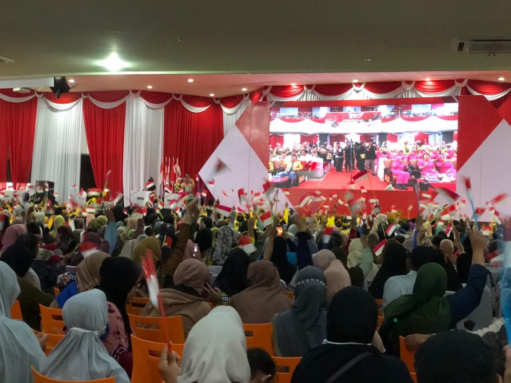 Mereka berjubel mengantre mengambil paket sembako dan pelayanan kesehatan gratis membuat panitia hampir kewalahan.