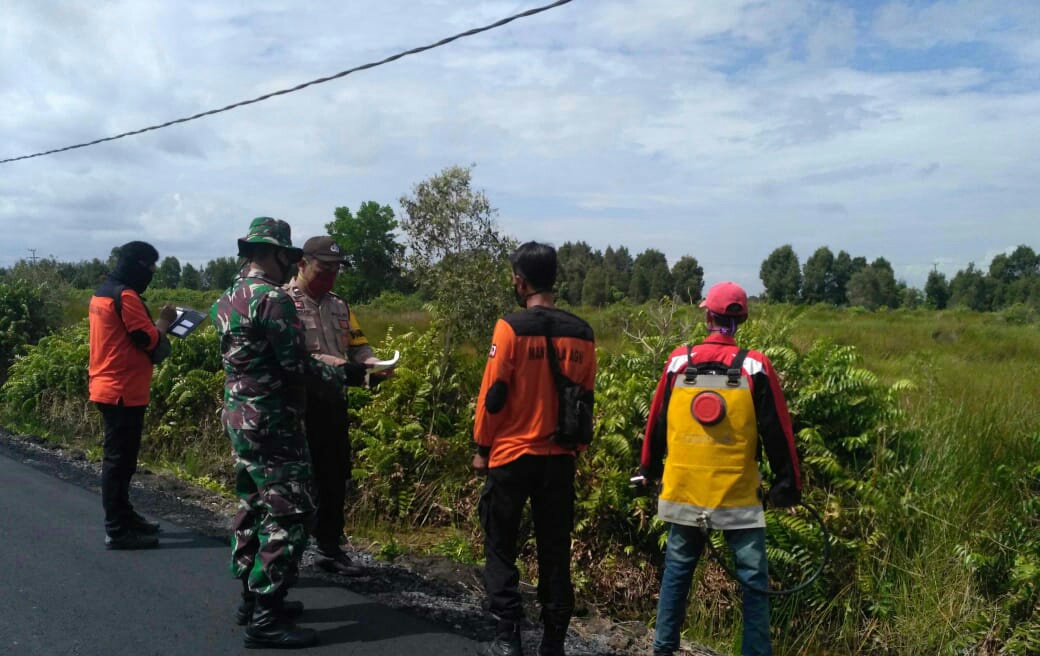 KANALKALIMANTAN.COM, MARABAHAN – Bhabinkamtibmas Polsek Jejangkit bersama Babinsa Jejangkit dan Manggala Agni Banjarmasin pengecekan potensi titik-titik api di desa Jejangkit Muara, Kecamatan Jejangkit, Kabupaten Barito Kuala (Batola), Minggu (23/8/2020).