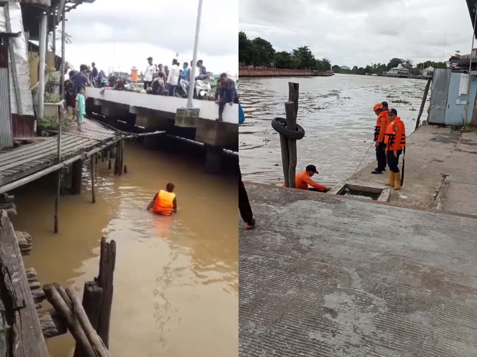 “Kejadian aslinya sekitar jam 01.00 malam, jadi tidak baru saja. Kita lakukan penyisiran di dua titik yakni di pinggir sungai atau di tengah ujung siring aliran air. Jika posisinya korban bercebur ke tengah dirinya tidak bisa berenang, tapi kalau di pinggir bisa saja masih disisir,” ungkap Ahmad Kelana, relawan emergency Banjarmasin.