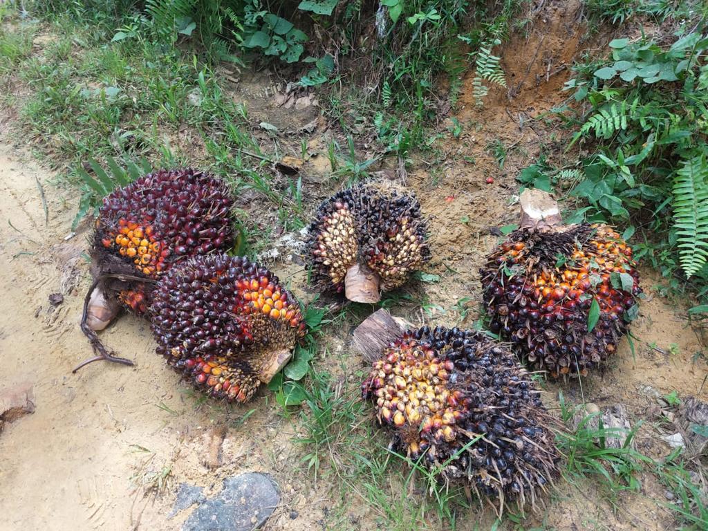 Tanda buah sawit segar yang menjadi barang bukti pencurian tiga pelaku. Foto: polrestanbu