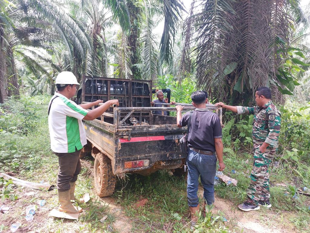 Dari tangan kawanan pelaku itu diamankan barang bukt buah sawit yang sudah dipanen seberat 2.040 Kg (2 ton), 2 batang egrek, 1 buah angkong warna merah, 2 batang tojok, 1 unit mobil pikap Suzuki Carry warna hitam DA 8378 ZN.