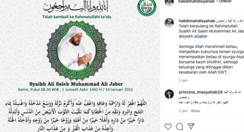 Unggahan tersebut menuai beragam komentar dari warganet. Salah satu dari mereka menyebut wafatnya para ulama adalah musibah yang besar dan nyata.