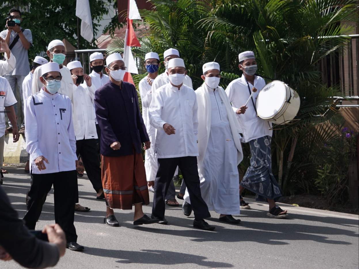 Dengan diiringi shalawat hadrah, pasangan Khairul-Habib Ali tiba di KPU Kota Banjarmasin sekitar pukul 09:30 Wita.