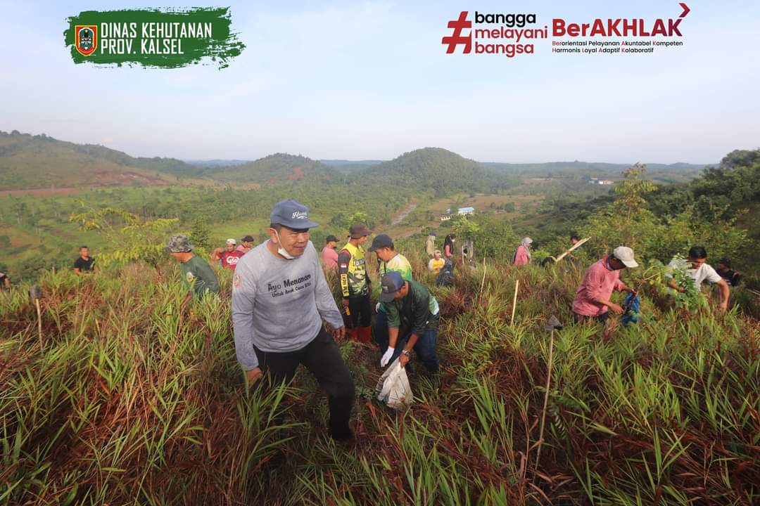 KANALKALIMANTAN.COM, MARTAPURA – Dinas Kehutanan Provinsi Kalimantan Selatan tiada henti-hentinya terus menggelorakan semangat Revolusi Hijau yang dicanangkan oleh Gubernur Kalsel Sahbirin Noor sejak tahun 2017 lalu. Bersama UPT Tahura Sultan Adam, Balai Perbenihan Tanaman Hutan serta berkolaborasi dengan PT Adaro Indonesia, Dishut melaksanakan kegiatan penanaman bersama di kawasan Gunung Pamaton wilayah Tahura Sultan Adam, Jumat (16/9/2022).