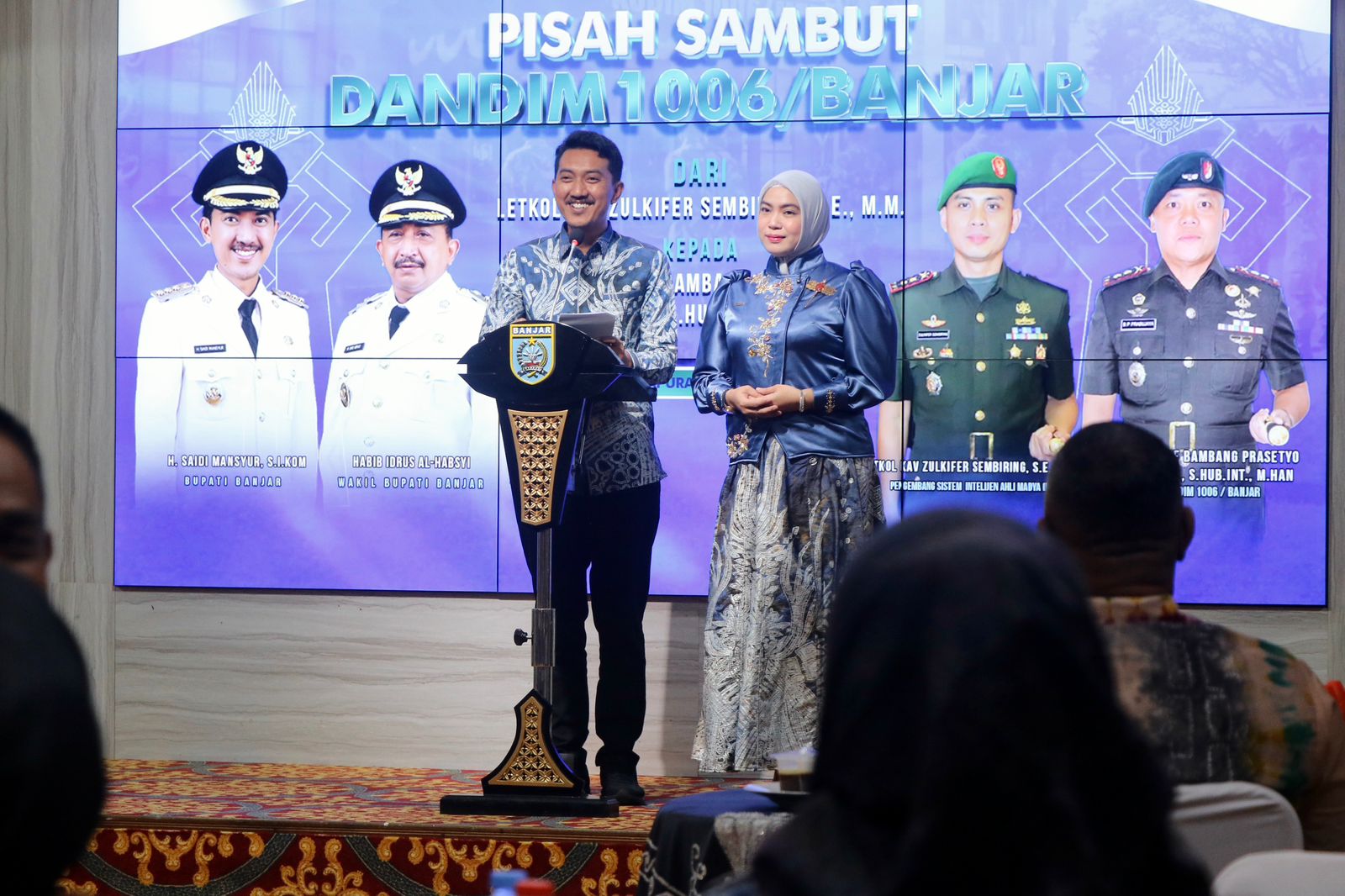 Bupati Banjar H Saidi Mansyur mengucapkan terima kasih kepada Letkol Kav Zulkifer Sembiring atas pengabdian dan dedikasinya, serta menyampaikan selamat datang kepada Letkol Inf Bambang Prasetyo Prabujaya.