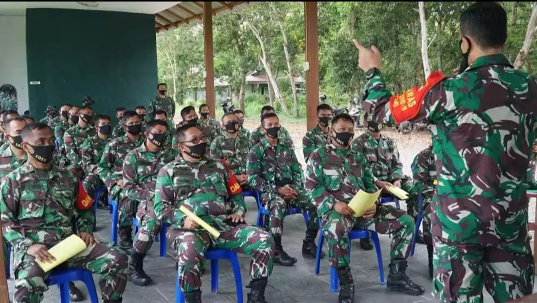 Komandan Kodim (Dandim) 1011/Klk Letkol Inf Ary Bayu Saputro memberikan pengarahan atau jam komandan kepada seluruh anggota. Giat jam komandan digelar di lapangan tembak Parikesit, Jalan Kalimantan Kuala Kapuas, Selasa (23/6/2020) sore.
