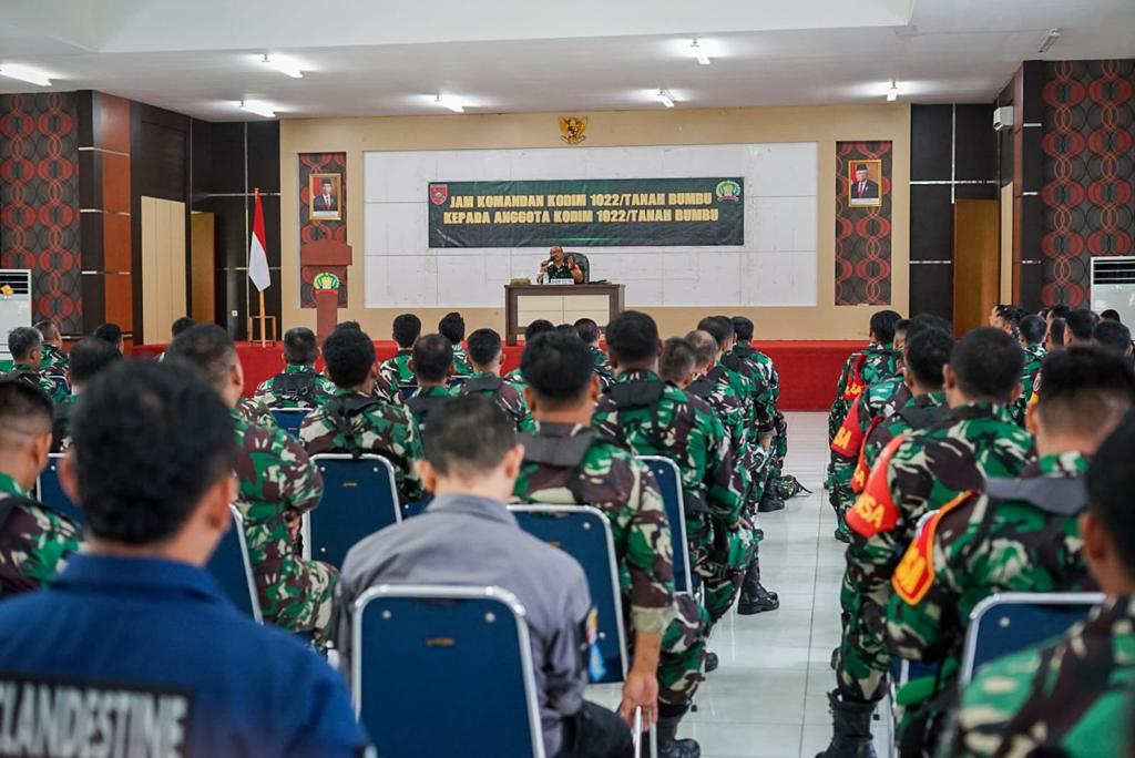 Salah satu arahan yang disampaikan oleh Dandim Kodim 1022/Tnb kepada seluruh prajurit, yaitu untuk melaksanakan tugas sebagai aparat kewilayahan secara baik.