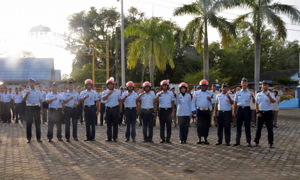 Danlanud Sjamsudin Noor Bagikan Helm Orange pada Anggotanya