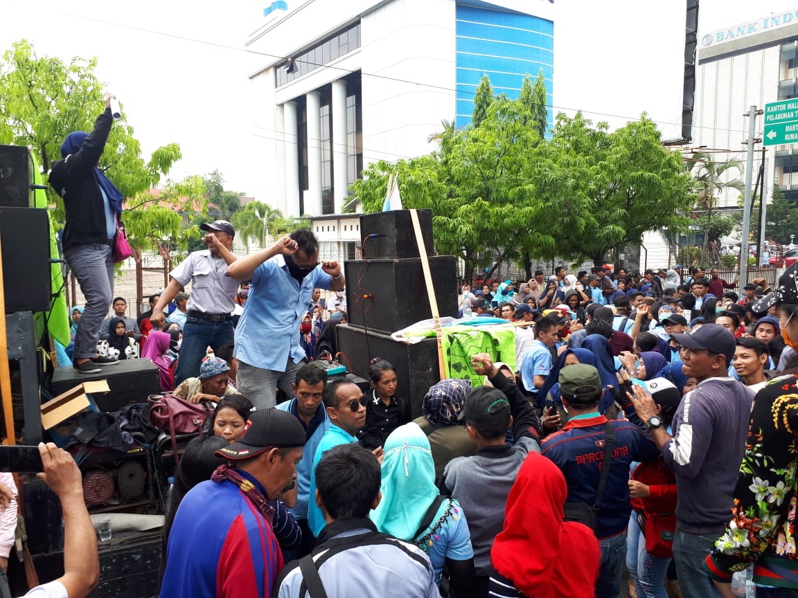 Massa yang hingga berita ini ditulis terus berdatangan ini, tegas menolak hal tersebut karena dianggap sebagai kebijakan yang tidak pro terhadap nasib buruh. Dalam orasinya, massa yang di antaranya berasal dari Pengurus Unit Kerja Serikat Pekerja Perkayuan dan Perhutanan Indonesia SPSI PT. Surya Satrya Timur Banjarmasin, menyerukan agar Revisi UU No 13 tahun 2003 tentang ketenagakerjaan versi APINDO dan rencana kenaikan iuran BPJS Kesehatan dibatalkan. Demikian juga tuntutan agar PP No. 78/2015 tentang pengupahandicabut, dan pelibatkan buruh di Indonesia dalam penyusunan undang-undang ketenagakerjaan.