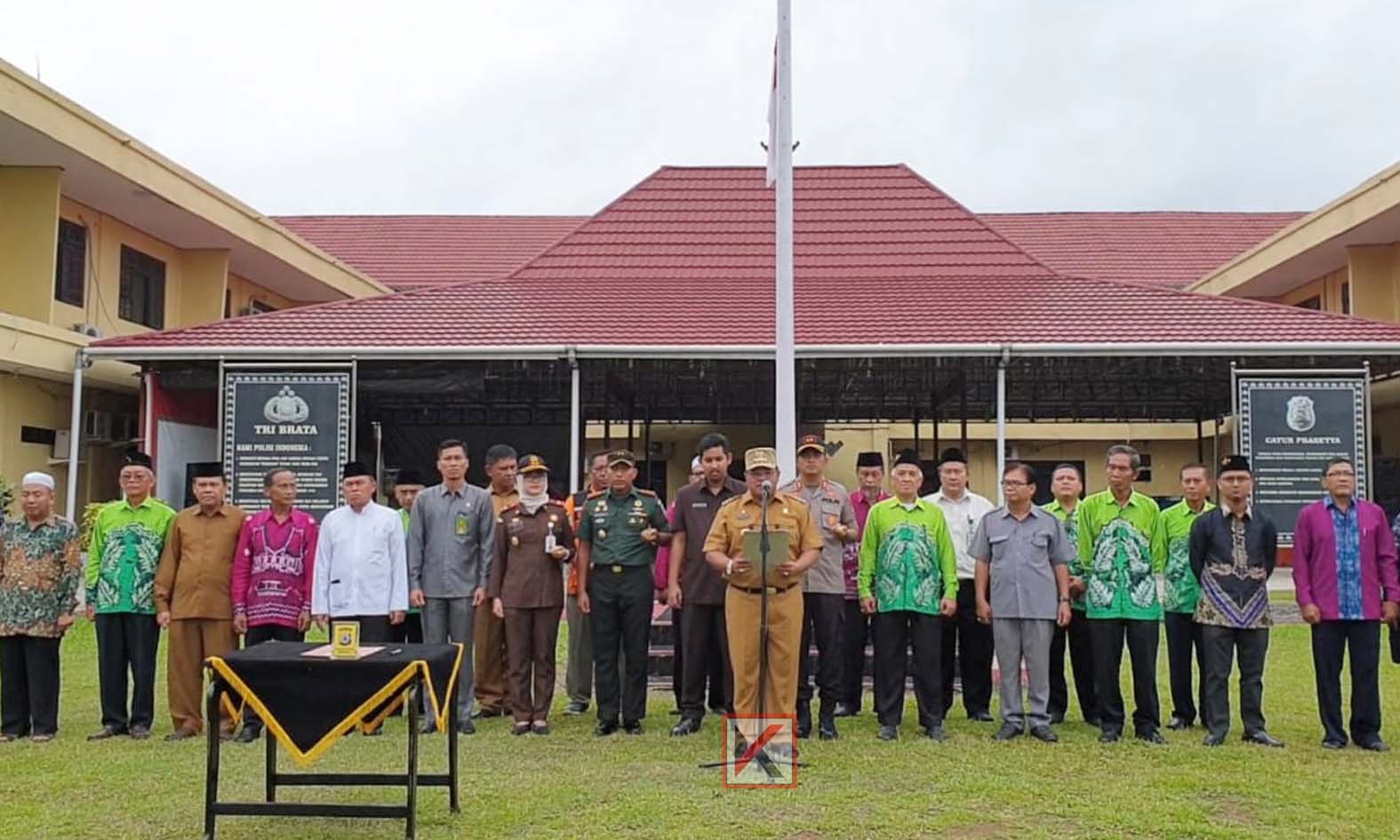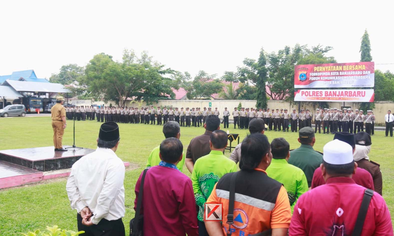 Deklarasi pernyataan ini dibacakan Walikota Banjarbaru diikuti oleh Forkopimda dan Tokoh Agama dihadapan peserta apel pagi di kantor Polres Banjarbaru, Senin (3/2/2020) pagi.