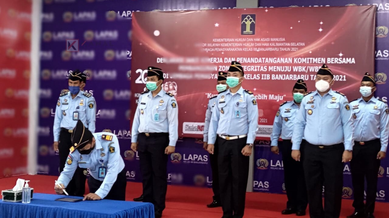 Kegiatan tersebut ditandai dengan penandatanganan komitmen bersama janji kinerja tahun 2021 antara Kalapas dengan pejabat struktural secara digital. Kemudian, dilanjutkan penandatanganan komitmen bersama pencanangan pembangunan ZI menuju WBK/WBBM antara Kalapas dengan perwakilan Forkompimda Kota Banjarbaru dan perwakilan pimpinan tinggi pratama Kantor Wilayah Kemenkum HAM Kalsel.
