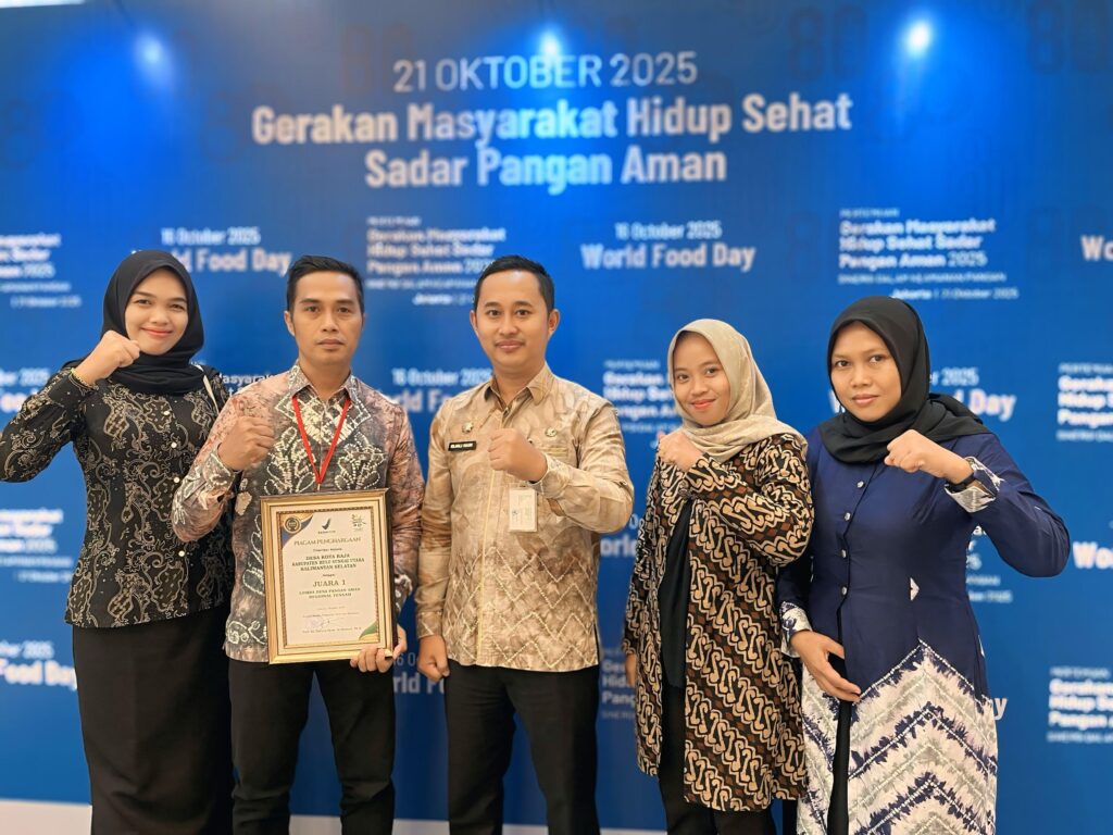 KANALKALIMANTAN.COM, AMUNTAI – Desa Kota Raja, Kecamatan Amuntai Selatan, Kabupaten Hulu Sungai Utara (HSU) Kalimantan Selatan, menerima penghargaan sebagai Juara 1 Lomba Desa Pangan Aman Tingkat Nasional 2025 Regional Tengah dari Badan Pengawas Obat dan Makanan (BPOM) RI.