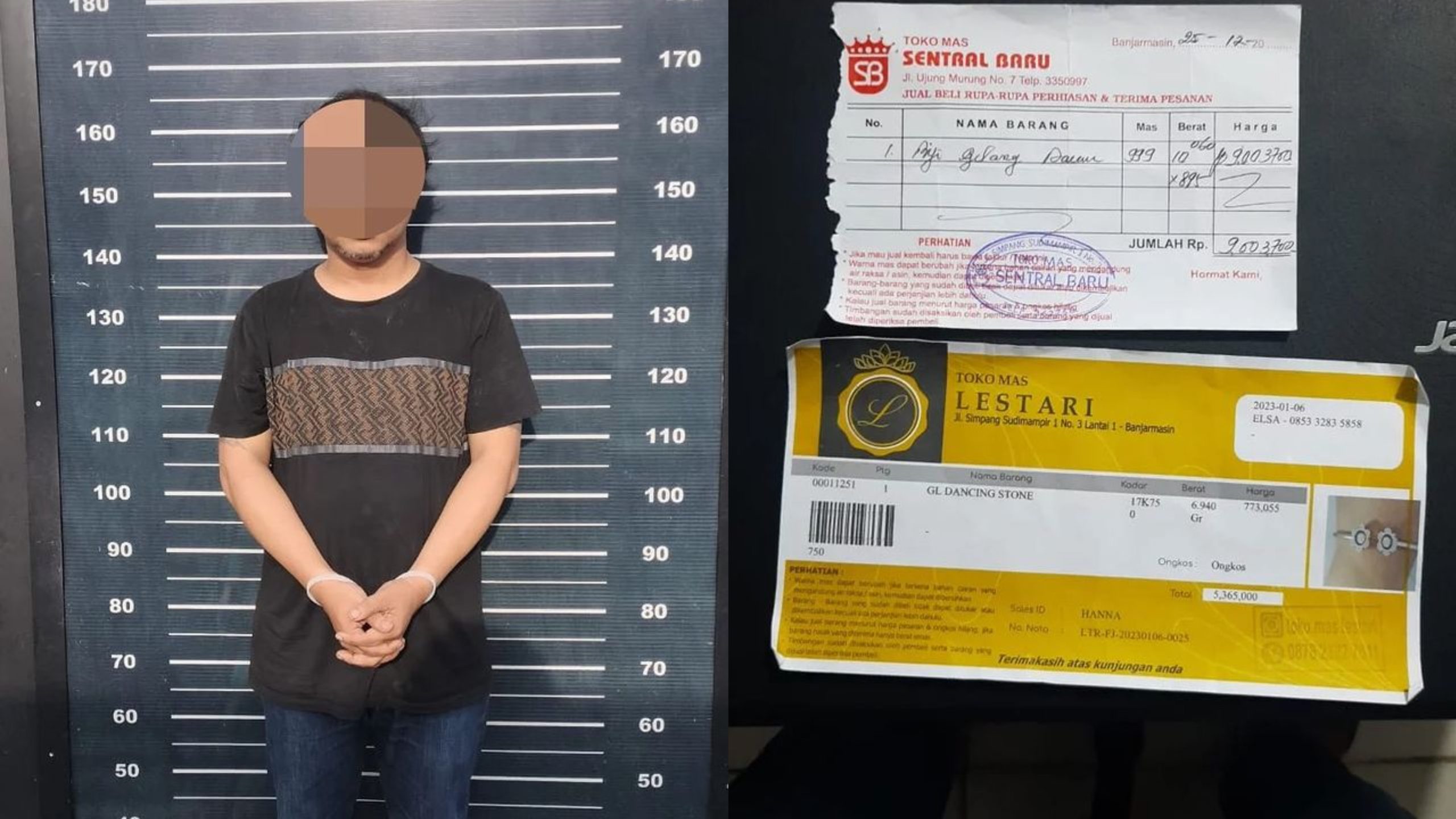 KANALKALIMANTAN.COM, BANJARMASIN – Seorang lelaki berinisial AR (46) warga Sulawesi Selatan dibekuk petugas kepolisian karena melakukan penipuan dan penggelapan sejumlah perhiasan.