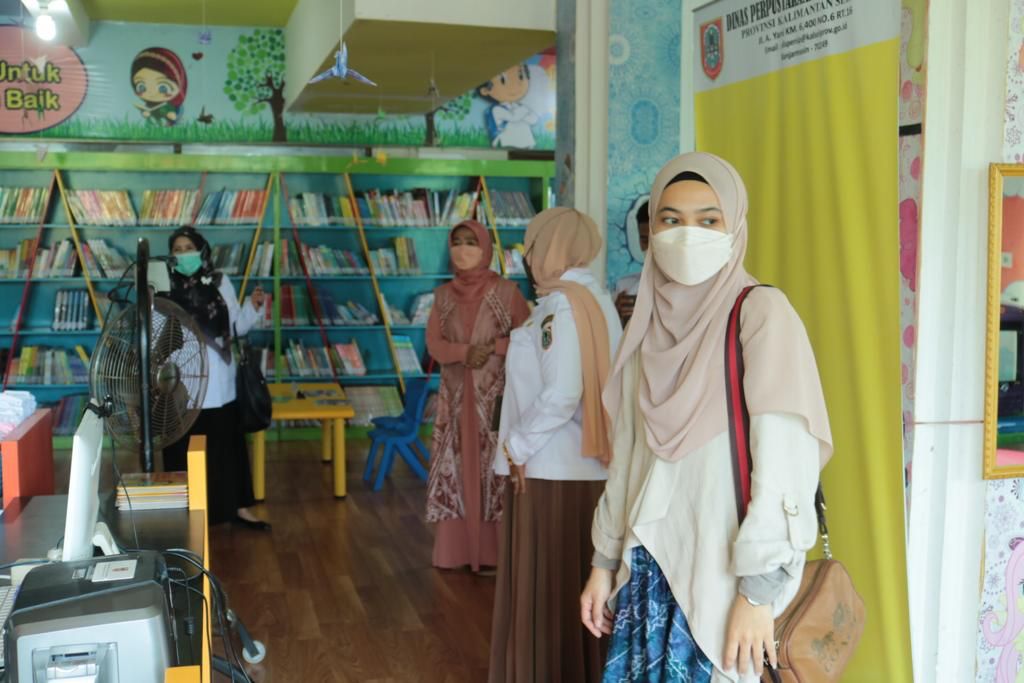 Selain di ruang perpustakaan umum, Mommy ASF juga dibawa ke ruang perpustakaan anak, yang menjadi andalan untuk berwisata literasi di Dispersip Kalsel.
